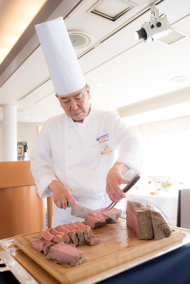 会場は、東京湾クルージングレストラン「シンフォニー」。船上からの東京タワーや東京スカイツリーを眺めながら、ライトアップされた東京の幻想的な夜景と、小濱雅説総料理長による心のこもったお料理をお楽しみください。アペリティフは、トップデッキにてシャンパーニュのサブラージュを予定しています。ワインも、大きな瓶で「シャブリグランクリュ2018年」のマチュザレム(6000ml)をご用意しました。また、当日ご参加の皆様には、ワールドシェーヌディ2023のバッジをプレゼントいたします。