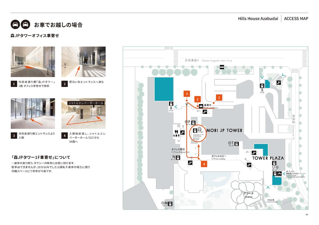 麻布台ヒルズ森JPタワー34F 「Hills House Sky Room Salon」までのアクセス